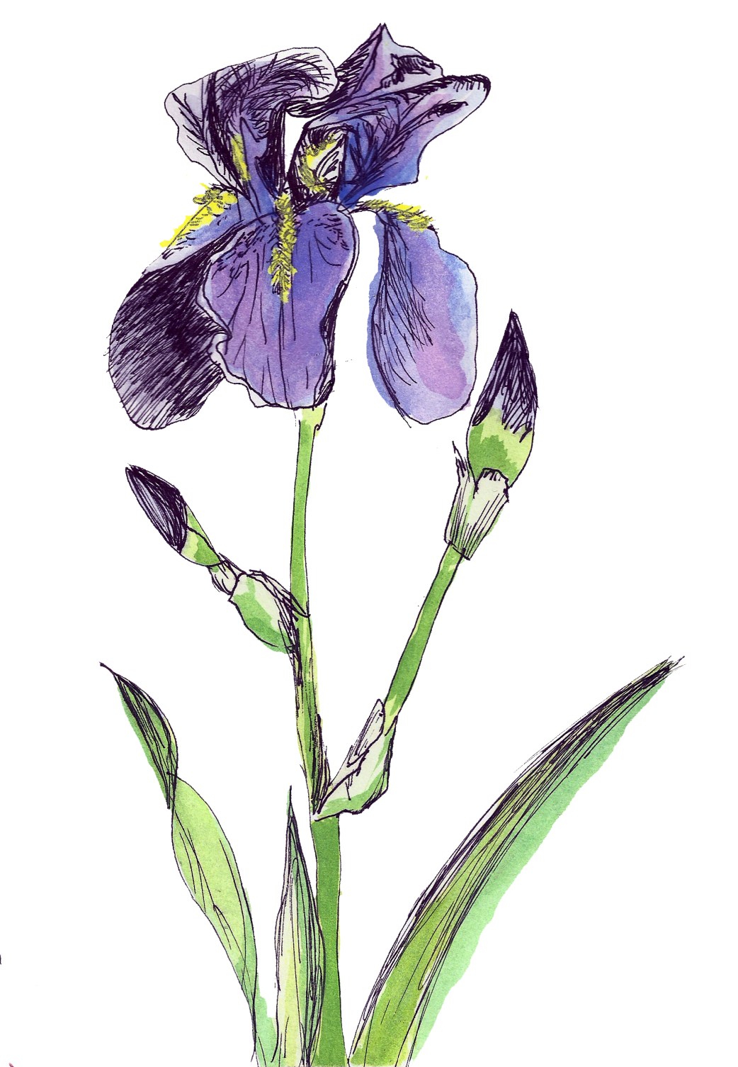 Iris from my garden, ink and watercolor, 2015