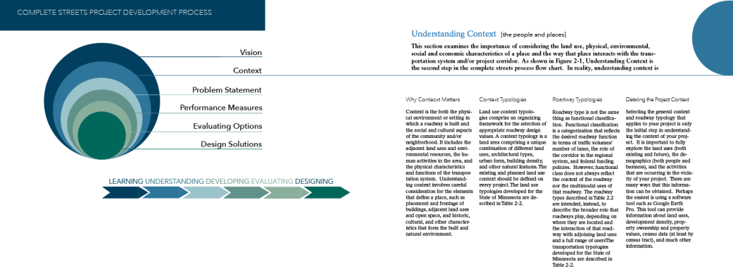 I worked with a student intern on this cover for the Twin Cities Complete Streets Guide for the University of MN Center for Transportation Studies