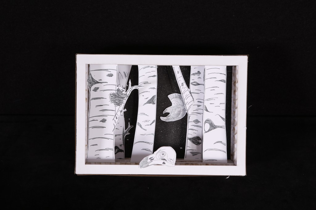 Bell Museum-inspired dioramans created by College of Design drawing students. Diorama frames were cut using a lastercutter and.ai template I created, then students assembled using their sketches from a visit to the museum.