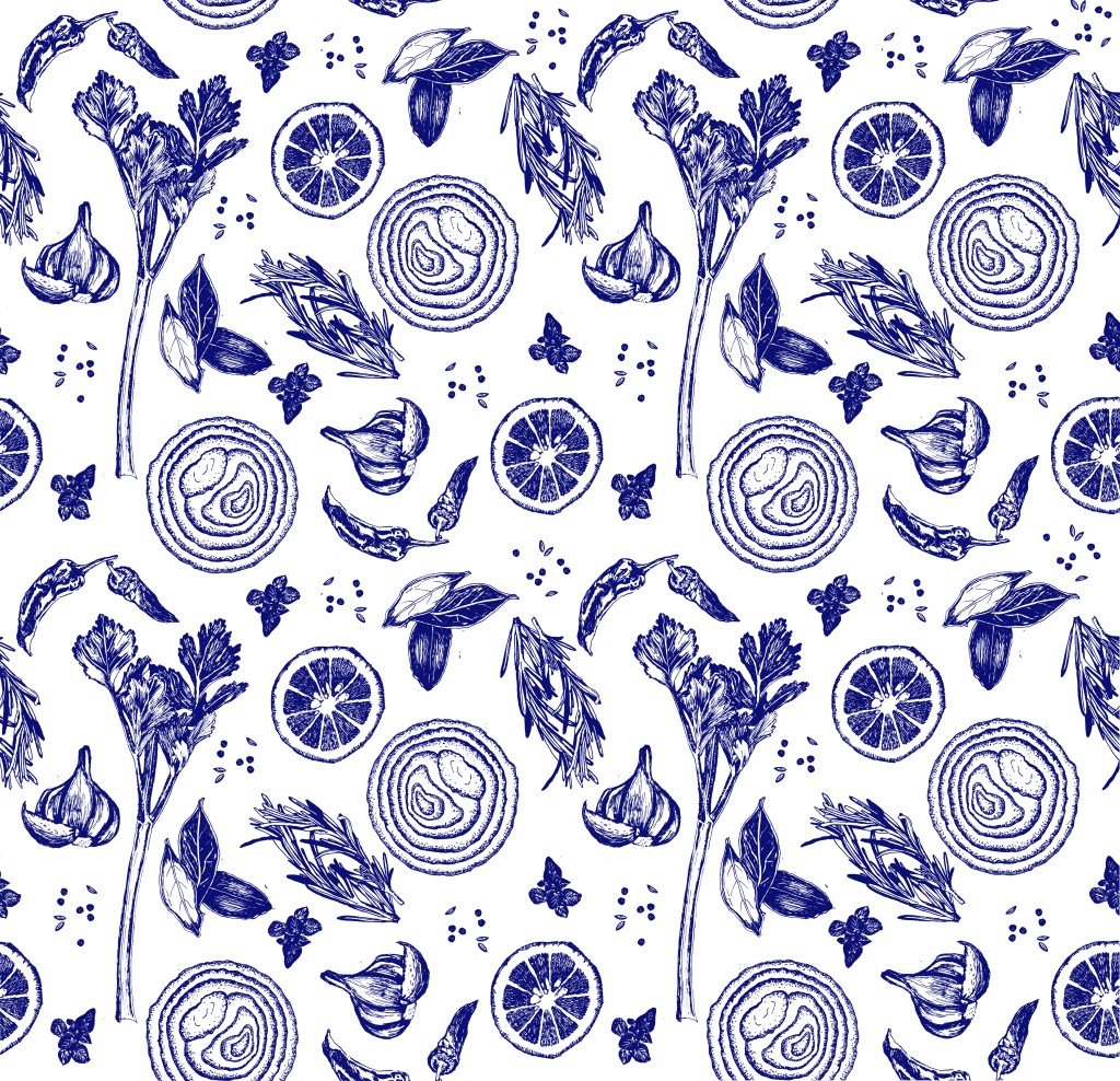 Design and entrepreneurship–logo design, market research, pitch deck, and a repeat pattern featuring ingredients for a healthy fast food concept