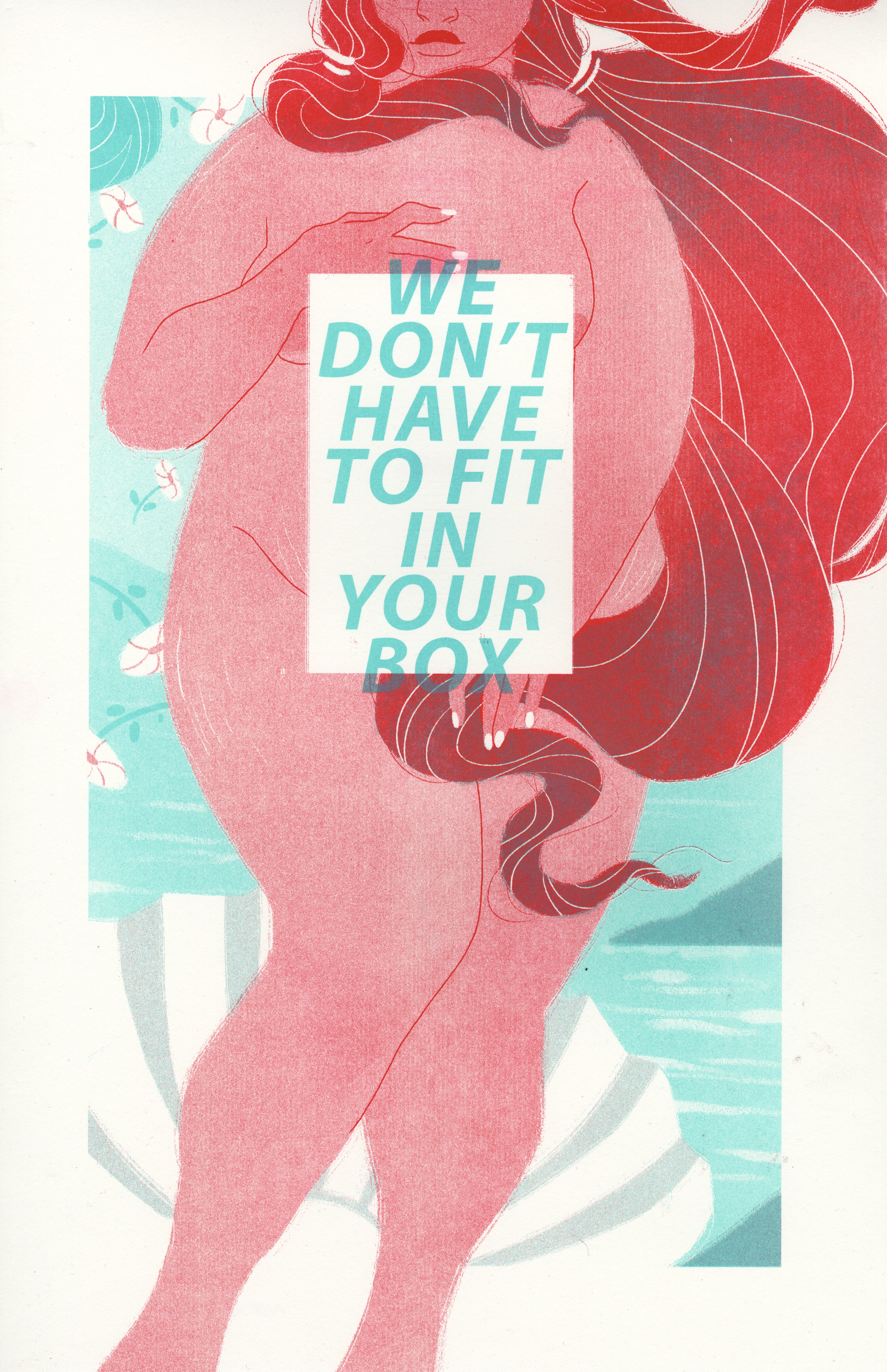 Two Color 112×18 Risography–posters by Minneapolis College of Art and Design Students. “Human Rights, Human Wrongs” project borrowed from Steven Heller’s The Education of a Graphic Designer